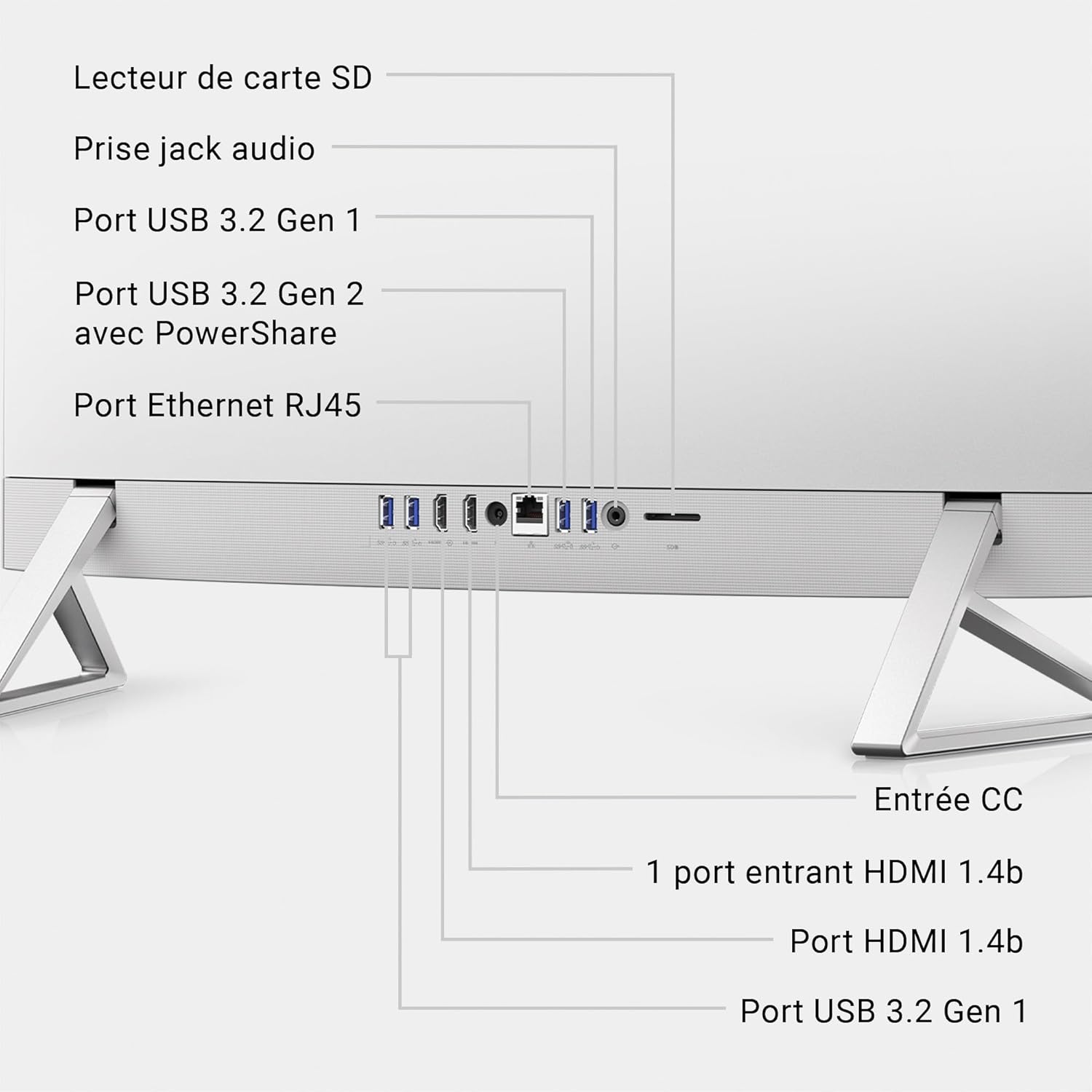 Interface du matériel informatique‎Ethernet, HDMI, USB 3.2 Gen 1, USB 3.2 Gen 2, Thunderbolt 4