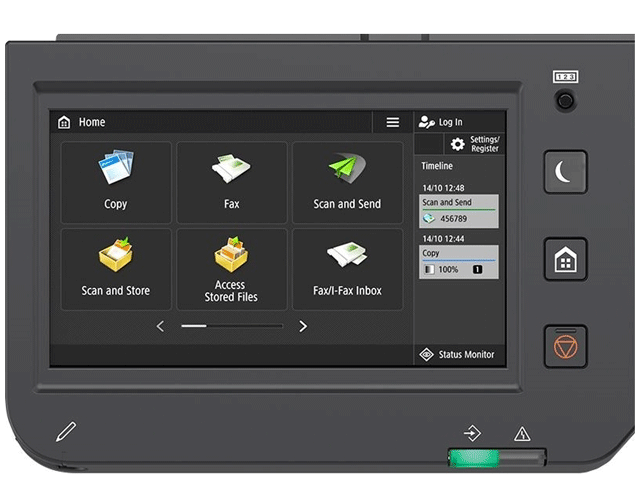 Capacité d'alimentation standard : 1200 feuilles - 2 cassettes papier avec une capacité de 550 feuilles (A4, 80 gsm) chacune et un plateau d'alimentation de 100 feuilles